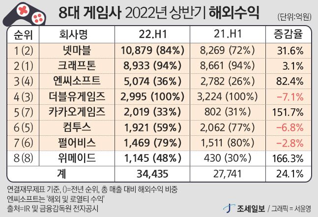 - ³Ý¸¶ºíÀÌ ¿Ã »ó¹Ý±â 8´ë °ÔÀÓ»ç °¡¿îµ¥ À¯ÀÏÇÏ°Ô ±Û·Î¹ú ½ÃÀå¿¡¼ 1Á¶¿ø ÀÌ»óÀÇ ¸ÅÃâÀ» ´Þ¼ºÇϸç ÇØ¿Ü¼öÀÍ 1À§¿¡ µî±ØÇß´Ù. ÃÑ ¸ÅÃâ ´ëºñ ÇØ¿Ü¼öÀÍ ºñÁßÀº Áö³ÇØ ´ëºñ 12% Æ÷ÀÎÆ® Áõ°¡ÇÑ..