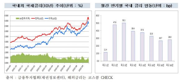 • Áö³­´Þ ±¹³» ä±Ç±Ý¸®°¡ Å« ÆøÀ¸·Î »ó½ÂÇÑ °ÍÀ¸·Î ³ªÅ¸³µ´Ù. ¹Ì±¹ ¿¬¹æÁغñÁ¦µµ(Fed,¿¬ÁØ)°¡ ÀÚÀÌ¾ðÆ®½ºÅÜ(75bp ±Ý¸®Àλó)À» ´ÜÇàÇÑ µ¥ À̾î Çѱ¹ÀºÇà ÃÑÀç°¡ ºò½ºÅÜ(50bp ±Ý¸®Àλó)À» ¾ð±Þ..