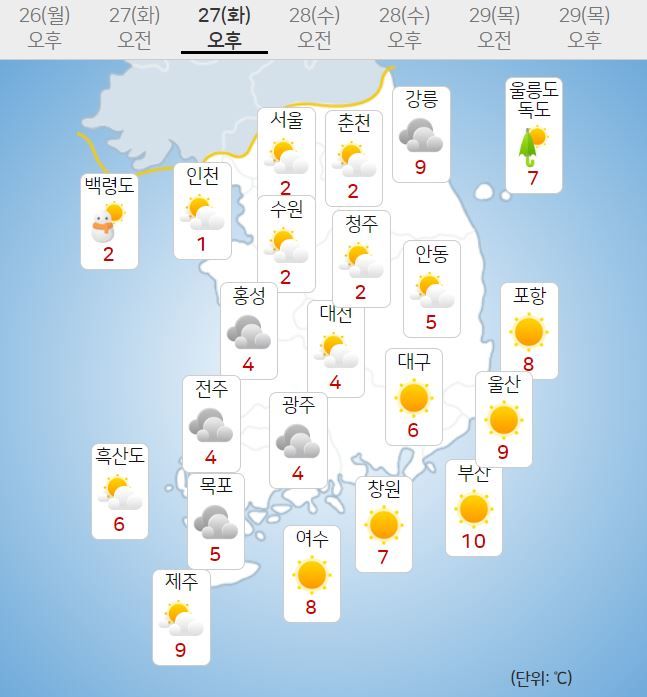 - È¿äÀÏÀÎ 27ÀÏ, Àü±¹ÀÌ ±¸¸§¸¹°Ú½À´Ï´Ù. Áߺγ»·ú°ú ÀϺΠÀü¶óµ¿ºÎ³»·ú, °æºÏ³»·úÀ» Áß½ÉÀ¸·Î ÇÑÆÄÆ¯º¸°¡ ¹ßÈ¿µÈ °¡¿îµ¥, ¾ÆÄ§ ±â¿ÂÀº °æ±âºÏºÎ·µ¿ºÎ¿Í °¿ø³»·ú·»êÁö, Ãæ..