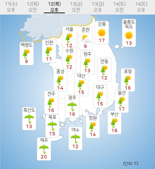 - ¸ñ¿äÀÏÀÎ 12ÀÏ, Àü±¹ÀÌ °¡²û ±¸¸§¸¹´Ù°¡ ¿ÀÈĺÎÅÍ Â÷Â÷ Èå·ÁÁö°Ú½À´Ï´Ù. ¿ÀÈÄ¿¡ Á¦ÁÖµµ¿Í Àü³²±Ç, ¹ã¿¡ Àü±¹ ´ëºÎºÐ Áö¿ª¿¡ ºñ°¡ ³»¸®±â ½ÃÀÛÇØ 13ÀÏ ¿ÀÈıîÁö Àü±¹¿¡ ºñ°¡ ³»¸®°Ú½À´Ï´Ù..