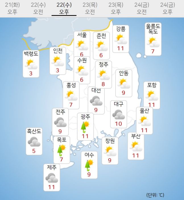 - ¼ö¿äÀÏÀÎ 22ÀÏ, Àü±¹ÀÌ °¡²û ±¸¸§¸¹°Ú½À´Ï´Ù. ´ÊÀº ¹ãºÎÅÍ Àü³²±Ç°ú °æ³²±Ç, Á¦ÁÖµµ»êÁö¿¡ ºñ°¡ ³»¸®°Ú°í, ÀüºÏ³²ºÎ¿Í Á¦ÁÖµµ¿¡´Â ºø¹æ¿ïÀÌ ¶³¾îÁö°Å³ª ´«ÀÌ ³¯¸®´Â °÷ÀÌ ÀÖ°Ú½À´Ï´Ù. ..
