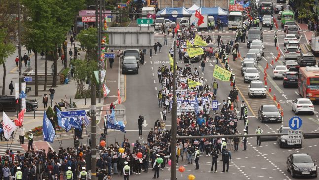 • ³ëµ¿ÀýÀÎ 1ÀϾç´ë³ëÃÑÀ» ºñ·ÔÇÑ ³ëµ¿ÀÚ ´ÜüµéÀÌ ±¤È­¹®·¿©Àǵµ µî¼­¿ï µµ½É¿¡¼­ ´ë±Ô¸ð Áýȸ¸¦ ¿¬´Ù. ¹ÎÁÖ³ëÃÑÀº ¿ÀÈÄ 2½Ã ¼­¿ï Á¾·Î±¸ µ¿È­¸é¼¼Á¡ ¾Õ¿¡¼­ '¼¼°è³ëµ¿Àý´ëȸ&..