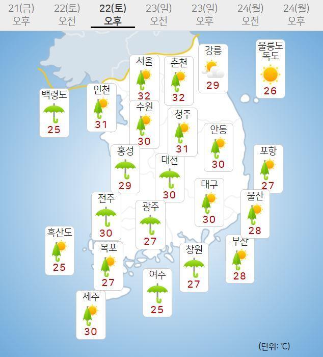 • Åä¿äÀÏÀÎ 22ÀÏ, Àü±¹ÀÌ °¡²û ±¸¸§¸¹´Ù°¡ Â÷Â÷ Èå·ÁÁ® ¿ÀÈĺÎÅÍ ºñ°¡ ³»¸®°Ú½À´Ï´Ù. ºñ´Â »õº® Á¦ÁÖµµ¿Í Àü³²ÇؾÈÀ» ½ÃÀÛÀ¸·Î ³·¿¡ ³²ºÎÁö¹æ, ¿ÀÈĺÎÅÍ ¹ã »çÀÌ¿¡´Â ±× ¹ÛÀÇ Àü±¹À¸·Î È®..