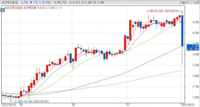 - À¯ÁøÅõÀÚÁõ±Ç ÁÖ°¡°¡ ¿ÀÀü ÀåÁß¿¡ 52ÁÖ ½Å°í°¡¸¦ °æ½ÅÇß´Ù°¡ ¿ÀÈÄ µé¾î 25% ³Ñ°Ô ºüÁö¸é¼ ±Ø½ÉÇÑ ÁÖ°¡º¯µ¿À» º¸¿´´Ù. À¯ÁøÅõÀÚÁõ±Ç ÁÖ°¡°¡ ÃÖ±Ù ¼® ´Þ°£ 70% »ó½ÂÇÑ µ¥ µû¶ó Â÷ÀͽÇÇö..