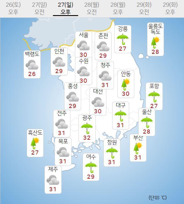 - ÀÏ¿äÀÏÀÎ 27ÀÏ, Àü±¹ÀÌ ´ëü·Î È帮°Ú½À´Ï´Ù. °æºÏ³²ºÎµ¿ÇؾȰú ºÎ»ê, ¿ï»ê, °æ³²µ¿ºÎ´Â ¿ÀÀüºÎÅÍ, °¿ø¿µµ¿°ú ÀüºÏµ¿ºÎ, Àü³²±Ç, ±× ¹ÛÀÇ °æ»ó±Ç, Á¦ÁÖµµ´Â ¿ÀÈĺÎÅÍ °¡²û ºñ°¡ ³»¸®°Ú..