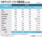 - ¸ÅÃâ¾× »óÀ§±Ç¿¡ À̸§À» ¿Ã¸° 10´ë ½ÄÀ½·á ±â¾÷ÀÇ Áö³ÇØ ¹ýÀμ¼ ±Ô¸ð°¡ Àü³âº¸´Ù 17.8%(462¾ï¿ø) °¨¼ÒÇÑ °ÍÀ¸·Î Áý°èµÆ´Ù. Á¶¼¼ÀϺ¸°¡ CJÁ¦ÀÏÁ¦´ç, ´ë»ó¢ß, ·Ôµ¥À£Çªµå, ¿À¶Ñ±â, ·Ôµ¥Ä¥¼ºÀ½·á, ³ó½É, ÇÏÀÌÆ®Áø·Î, »ï¾ç»ç, µ¿¿øF&B,..