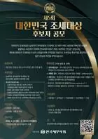 - ³³¼¼ÀÚ ±ÇÀÍ º¸È£¿Í Á¶¼¼Á¦µµ ¹ßÀü¿¡ ±â¿©ÇÑ Àι°À» ¹ß±¼Çϱâ À§ÇÑ '´ëÇѹα¹ Á¶¼¼´ë»ó' Èĺ¸ÀÚ °ø¸ð°¡ ½ÃÀ۵ƴÙ. Çѱ¹¼¼¹«»çȸ(ȸÀå ±¸ÀçÀÌ)´Â ´ÙÀ½ ´Þ 20ÀϱîÁö ÇÑ ´Þ°£ 'Á¦5ȸ ´ëÇѹα¹ Á¶¼¼´ë»ó' Èĺ¸ÀÚ¸¦ Àü±¹¹Î ´ë»óÀ¸·Î °ø°³ Ãßõ¹Þ..